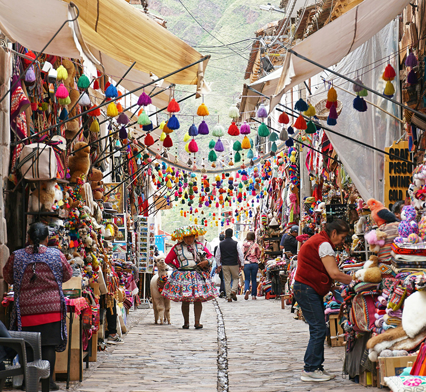 Fly to Cusco and transfer to the Sacred Valley, an area of spectacular beauty and historical significance. Visit Awanakancha to learn about Andean camelids and textile techniques, then continue to the Pisac Market and ruins, set high on a mountainside. Explore Ollantaytambo, a living Inca town with an impressive archaeological site that served as a royal estate and strategic military fortress. (Breakfast, Dinner)